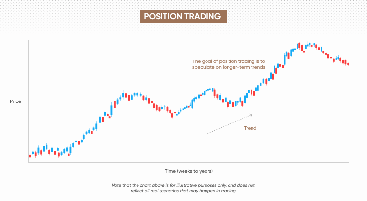 Position trading is a long-term strategy where traders hold positions for weeks, months, or even years. Instead of reacting to short-term fluctuations, position traders focus on capturing major market trends. While it shares similarities with investing, the key difference is that position traders can go both long and short, whereas traditional investors generally only buy and hold.